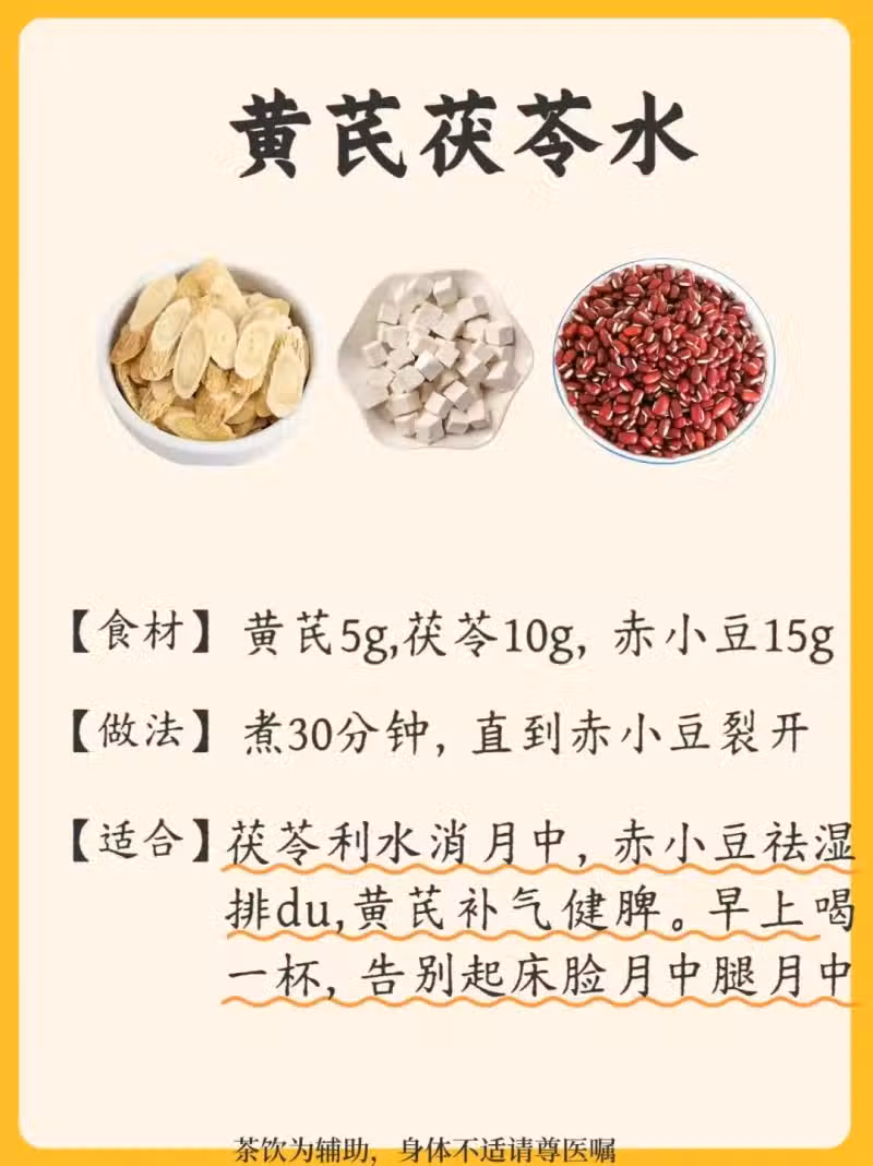 ✔️茯苓利水消腫,赤小豆祛濕排毒,黃芪補氣健脾。早上喝一杯,告別起床臉腫腿腫!