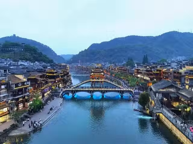 鳳凰是一個不大的小城,小巧而充滿詩意。整個古城分為新城和老城。老城依山傍水,清澈的沱江穿城而過。岸邊的城牆用紅砂岩砌成,南華山映襯著古老的城樓。這些城樓建於清朝,雖然鐵門已顯斑駁,但依然能看出曾經的威嚴。