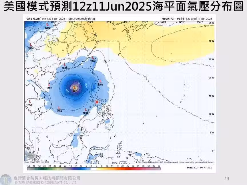 准颱風北上,水汽直衝台灣,預測嘉義縣、嘉義市、台南、高雄、屏東5縣市下雨。!賈新興表示,台灣、中國南邊都在低氣壓範圍內,周五(13)至周日(15)受西南水汽移入影響,導致午後雷陣雨較大,其中嘉義以南於深夜至隔天早上易有局部短暫雨,午後各地有局部短暫陣雨;下周一(16)清晨,台中以南有局部短暫雨,午後各地有局部短暫陣雨;下周二(17)午後,各地山區、宜蘭有零星短暫陣雨。