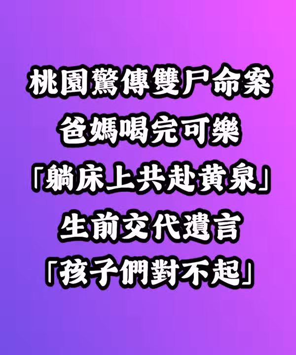 桃園雙屍命案!爸媽喝完可樂「躺床上共赴黃泉」...生前交代遺言:孩子們對不起