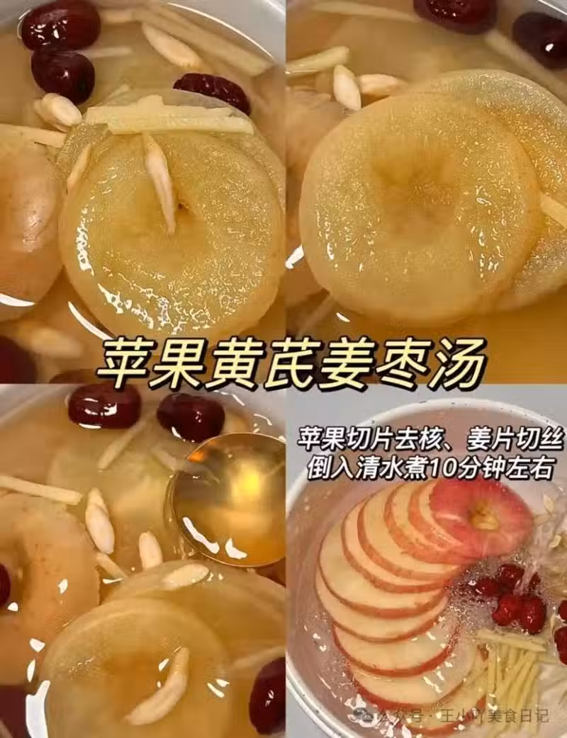 蘋果 1 個、黃芪 10 克、姜 1 塊、紅棗 5 顆、清水適量