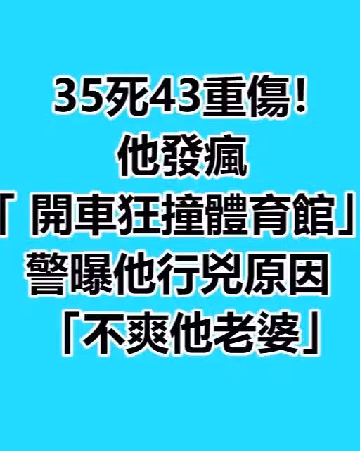 35死43重傷 !他發瘋「開車狂撞體育館」 警曝他行兇原因 :「不爽他老婆....」