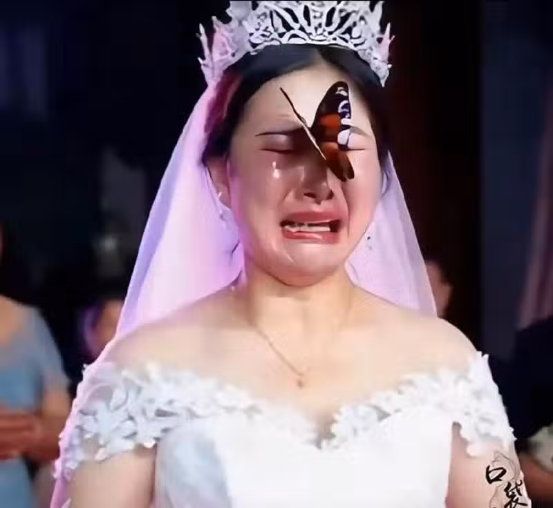 婚禮上,「一隻胡蝶死守新娘」遲遲不走「新娘愣3秒」當場淚崩顫喊:今天他的真來了!