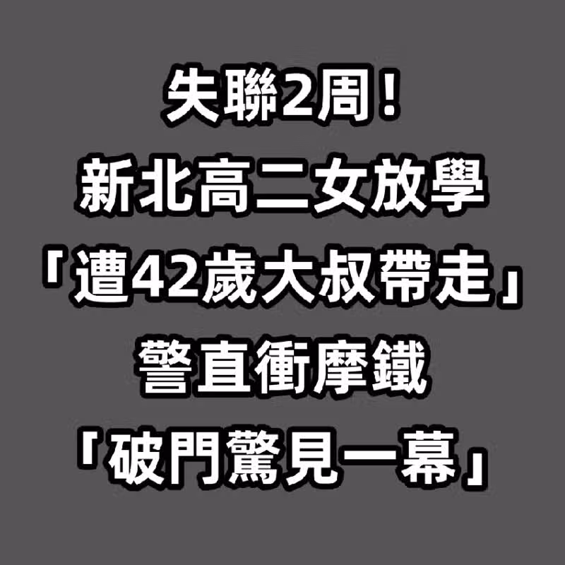 失聯2周!新北高二女放學「遭42歲大叔帶走」...警直衝摩鐵「破門驚見一幕!」