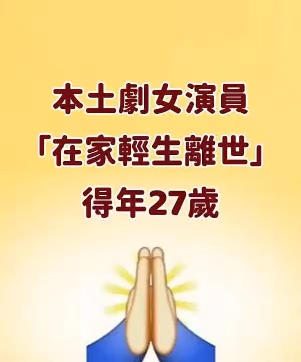 本土劇女演員「在家輕生離世」得年27歲!!!