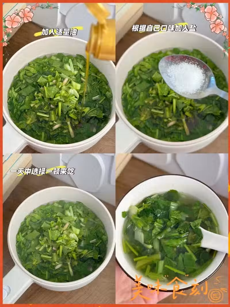 綠葉菜1把(任何品種綠葉菜都可以),鹽4克、雞精2克、