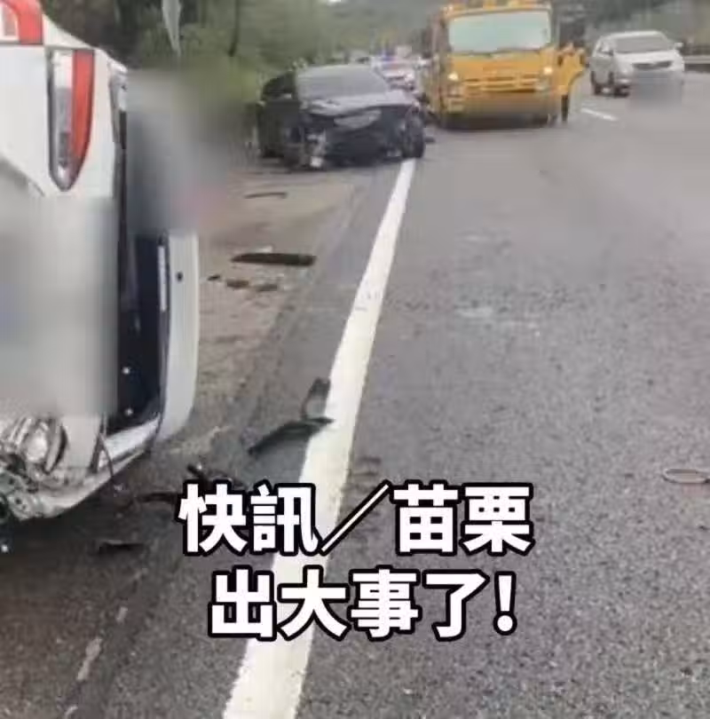國道1號南向120K、苗栗頭屋段(23日)下午2時許傳出一起車禍意外,初步了解,現場為2車發生碰撞,其中一部自小客車當場側翻,整起事故共造成7人受傷,目前警消已經趕抵現場,將傷者全數送醫。
