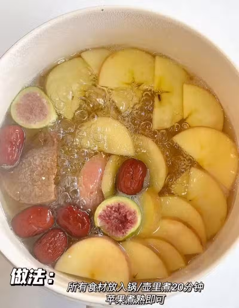 無花果1個|蘋果1個|陳皮1塊|茯苓4顆|紅棗5個