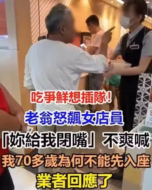 吃爭鮮想插隊!老翁怒女飆店員「你給我閉嘴」不爽喊「我70多歲為何不能先入座」業者回應了!