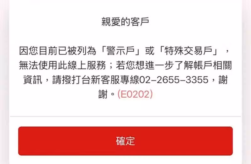 一名網友日前在Threads上曬出一張截圖,只見他收到網銀APP的通知,顯示目前已被列為「警示戶」或「特殊交易戶」,因此無法使用網銀線上服務,並請原PO撥打客服處理。對此,原PO也不解表示:「吃著火鍋、唱著歌就變成警示戶了,我謝謝,脆神們這個何解?」