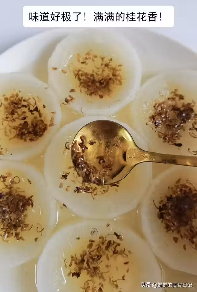 食材有白蘿蔔中段,蜂蜜,桂花干(沒有的話可以不放)。