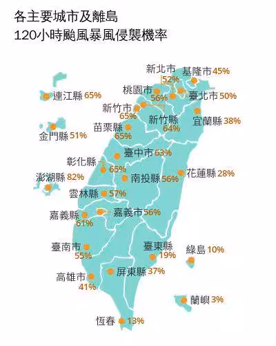 花蓮縣:28%台東縣:19%綠島:10%蘭嶼:3%離島澎湖縣:82%金門縣:51%連江縣:65%