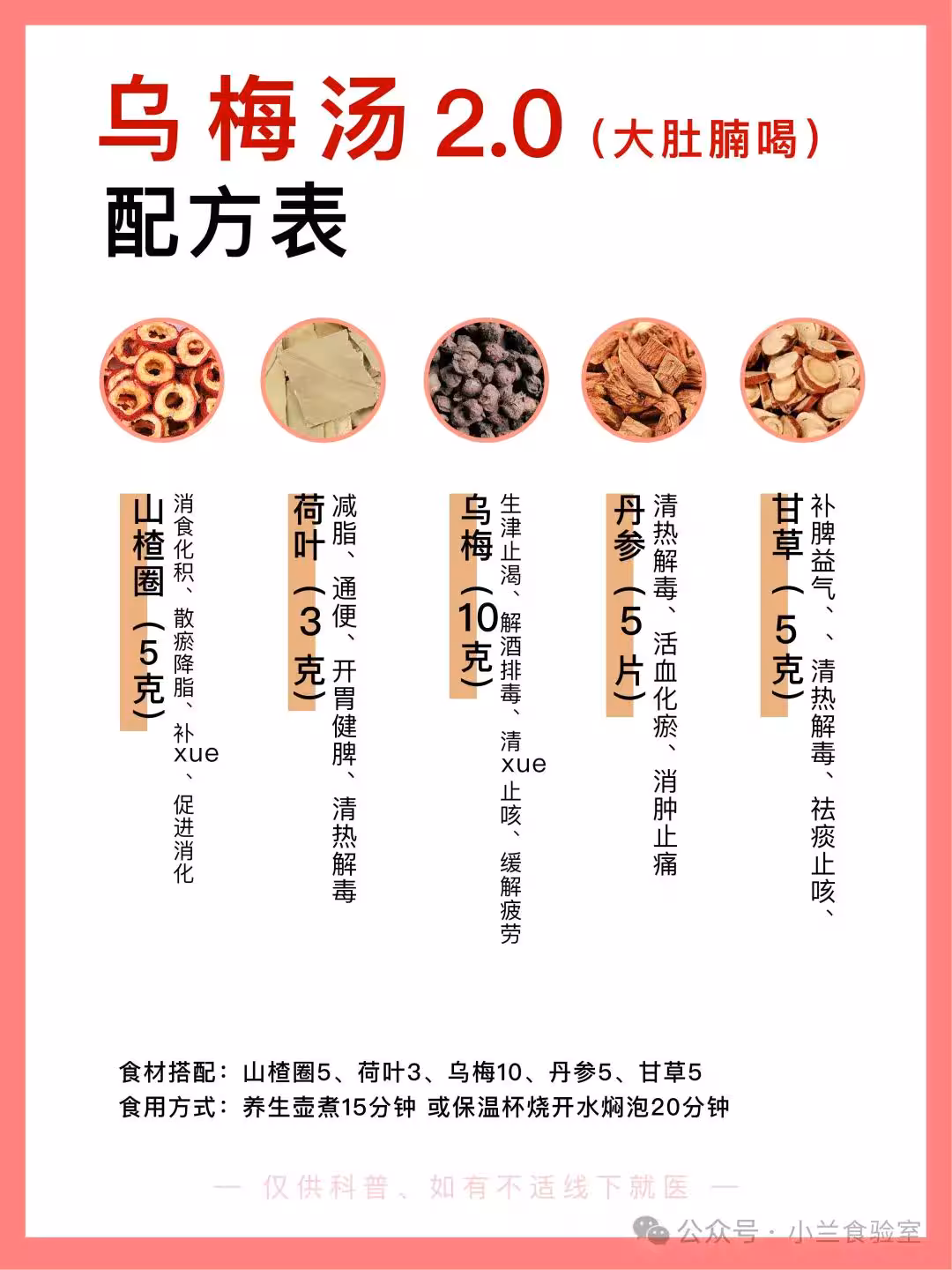 - 烏梅(10克):生津止渴、解酒排毒、補血、止咳