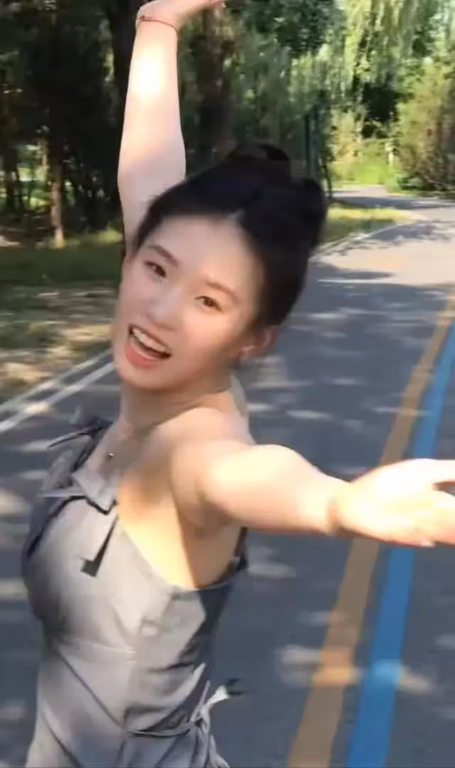 照片里那個穿著弔帶裙在馬路邊旋轉的女孩,和那個入水時能讓水花消失的姑娘是同一個人。
