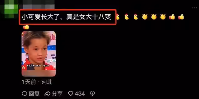 從一開始在領獎台上的懵懂無知,到現在參加比賽時的從容自在,全紅嬋的變化是巨大的,更是令人欣慰的。