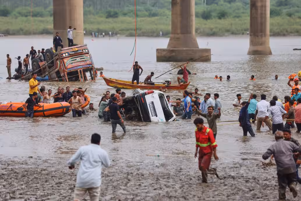 印度豆腐渣大橋突斷裂 「車子一輛接一輛落水」