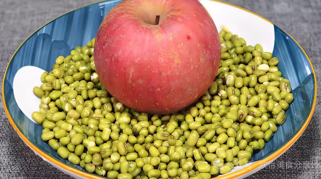 蘋果一個、綠豆小半碗(提前浸泡這樣更容易煮爛), 冰糖適量(根據個人口味調整,控糖的可以不加)