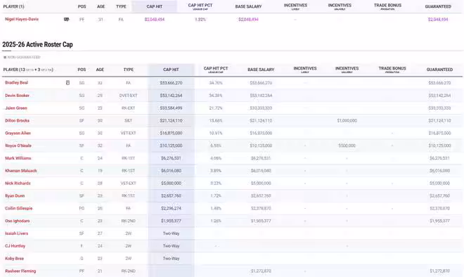 儘管太陽隊擁有布克+杰倫格林這對場均得分皆20+的組合,成為聯盟僅有的五對後場之一,但身處競爭激烈的西部,太陽隊目前的陣容深度也堪憂。