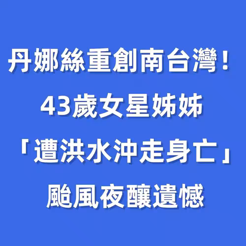 丹娜絲重創南台灣!43歲女星姐姐「遭洪水沖走身亡」颱風夜釀遺憾