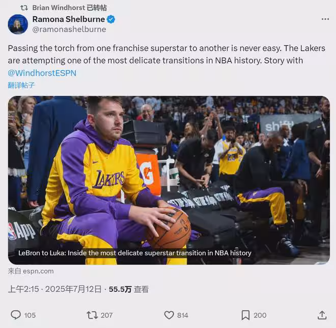 7月12日,ESPN兩大記者Ramona Shelburne和Brian Windhorst聯合撰文,披露了湖人和詹姆斯之間的矛盾。該報道稱,湖人已經明確表示,不會再給詹姆斯提供續約合同。至於下賽季結束後是否退役,這取決於詹姆斯自己的決定。