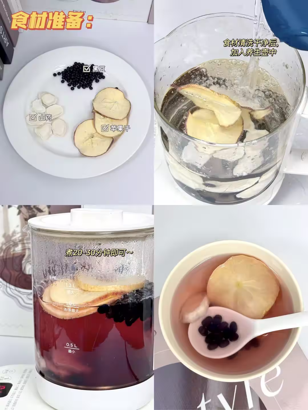 懷山藥乾片6片、黑豆15克、蘋果乾3片