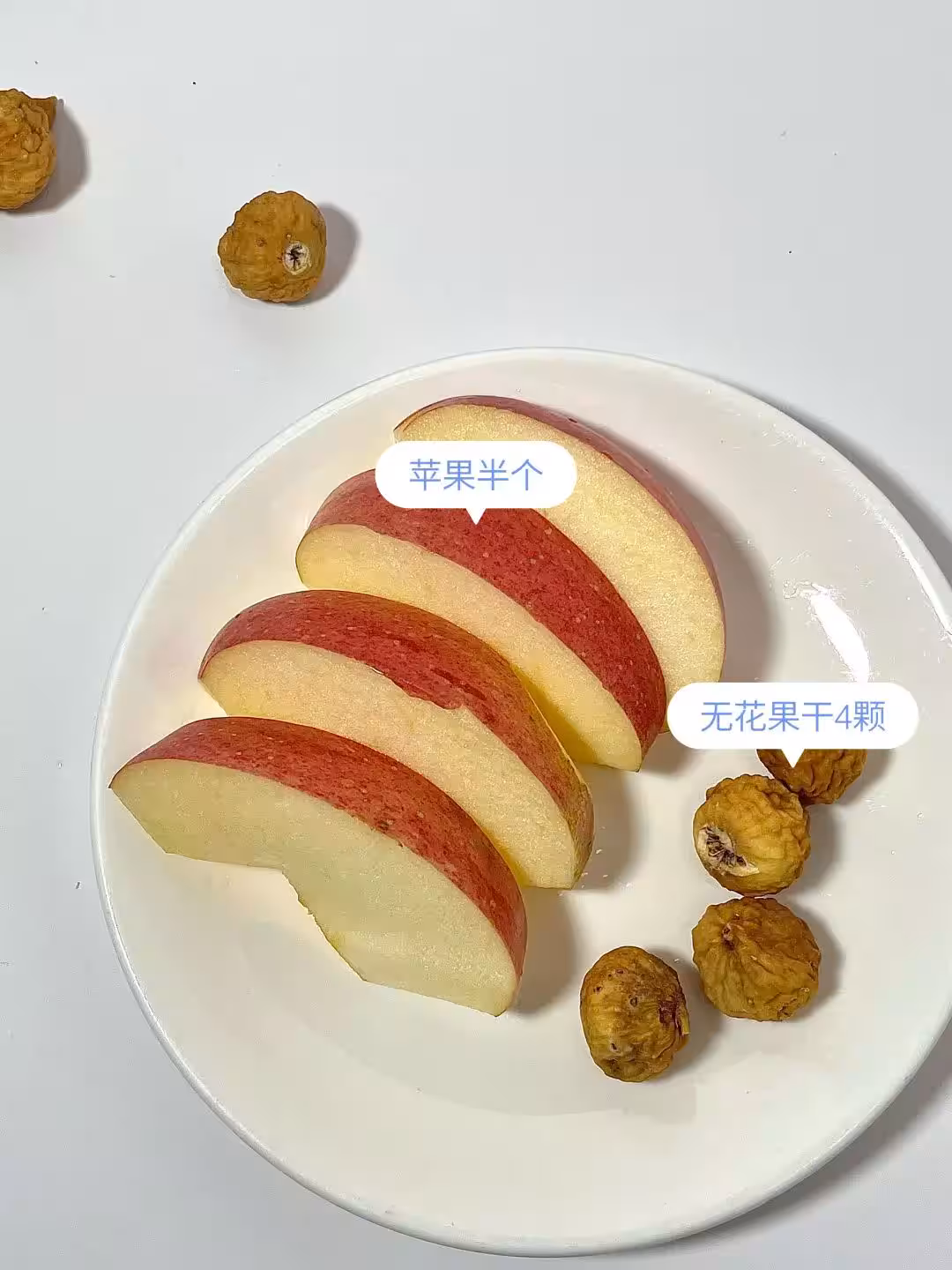1. 無花果乾沖洗乾淨,蘋果洗乾淨切片,所有食材放入養生壺,加足量清水,煮25-30分鐘,濾出湯水飲用。