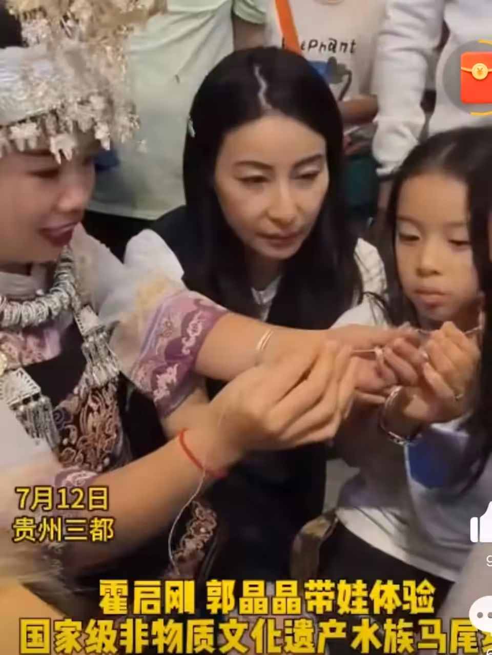 郭晶晶一家五口在貴州,俯身握手一點沒架子,衣服logo顯愛國情懷