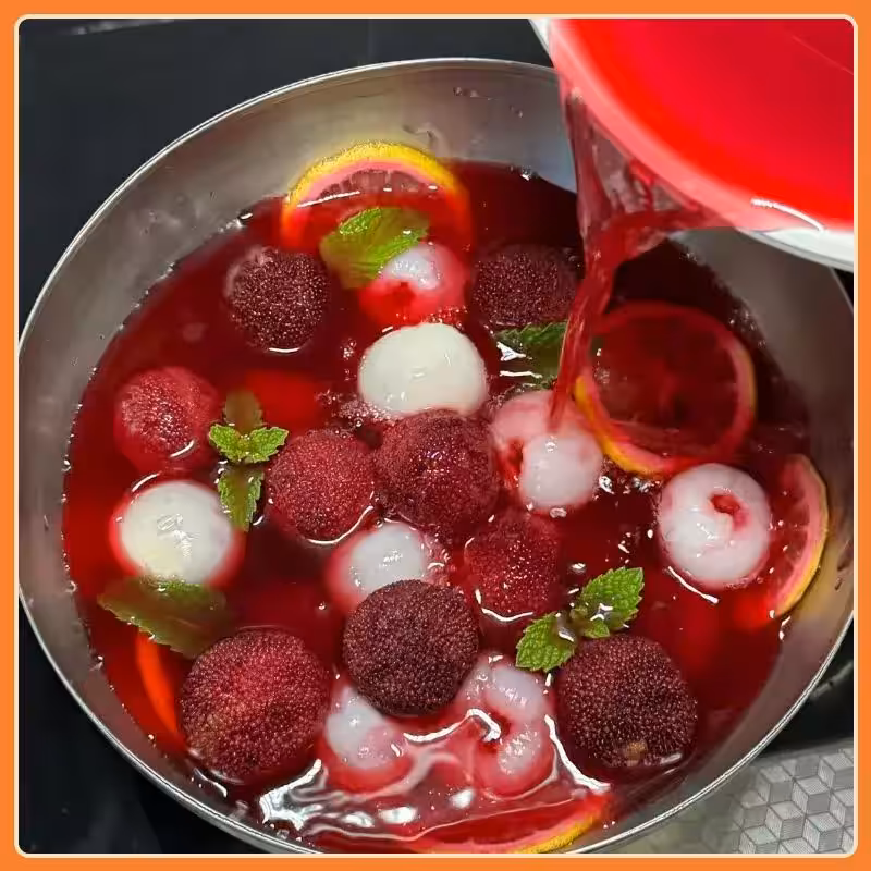01 楊梅荔枝飲 解暑生津、促進消化 熱得難以忍受,心裡又乾渴難耐?不如來一杯楊梅荔枝飲!楊梅讓人垂涎欲滴,還能促進食慾;荔枝甘甜多汁,不僅潤澤身體,還有助於滋補元氣;喝下去不會感到煩躁。將楊梅用鹽水浸泡洗凈,連同果核一同燉煮,這樣做出來的飲品風味更加濃郁。 冷藏之後,那湯的色澤如同胭脂紅寶石一般,喝起來酸酸甜甜還清清爽爽,帶著像荔枝爆汁那樣的甜美,很棒能夠消消暑,果肉軟乎乎的且多汁,冰涼涼的通透得直沁心窩,簡直就像是神仙飲品一樣!