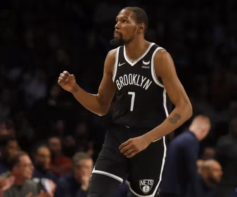 籃網時期:2019年至2022年加入籃網,杜蘭特再一次扮演球隊第一核心角色,這一次他又搞砸了,在身邊有歐文、哈登的前提下,3個賽季兩次打入季後賽,2021年首輪4-1淘汰了凱爾特人,但是第二輪被雄鹿4-3淘汰出局,那一記踩線三分是多少人心中的意難平,2022年哈登離開,杜蘭特與歐文的雙核組合,季後賽首輪就被凱爾特人4-0橫掃出局!