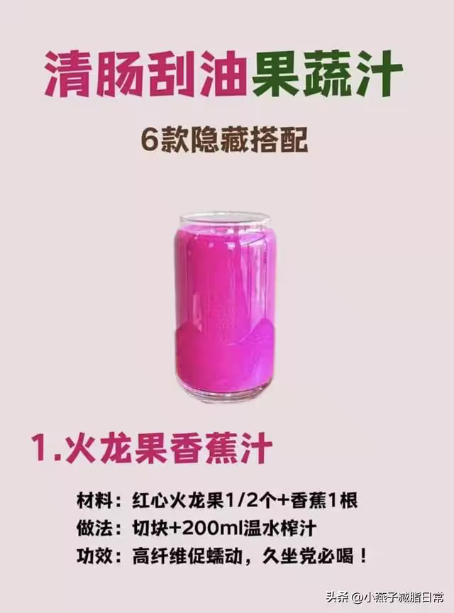功效:紅心火龍果的籽+香蕉的膳食纖維,簡直是久坐黨「救星」!喝完第二天腸道動得超積極,小肚子都軟乎乎的!
