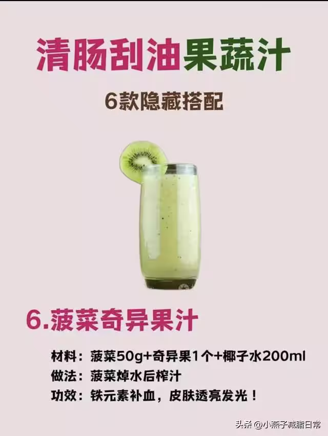 做法:菠菜先焯水去澀,和切塊的奇異果、椰子水一起榨,酸甜口超驚喜。