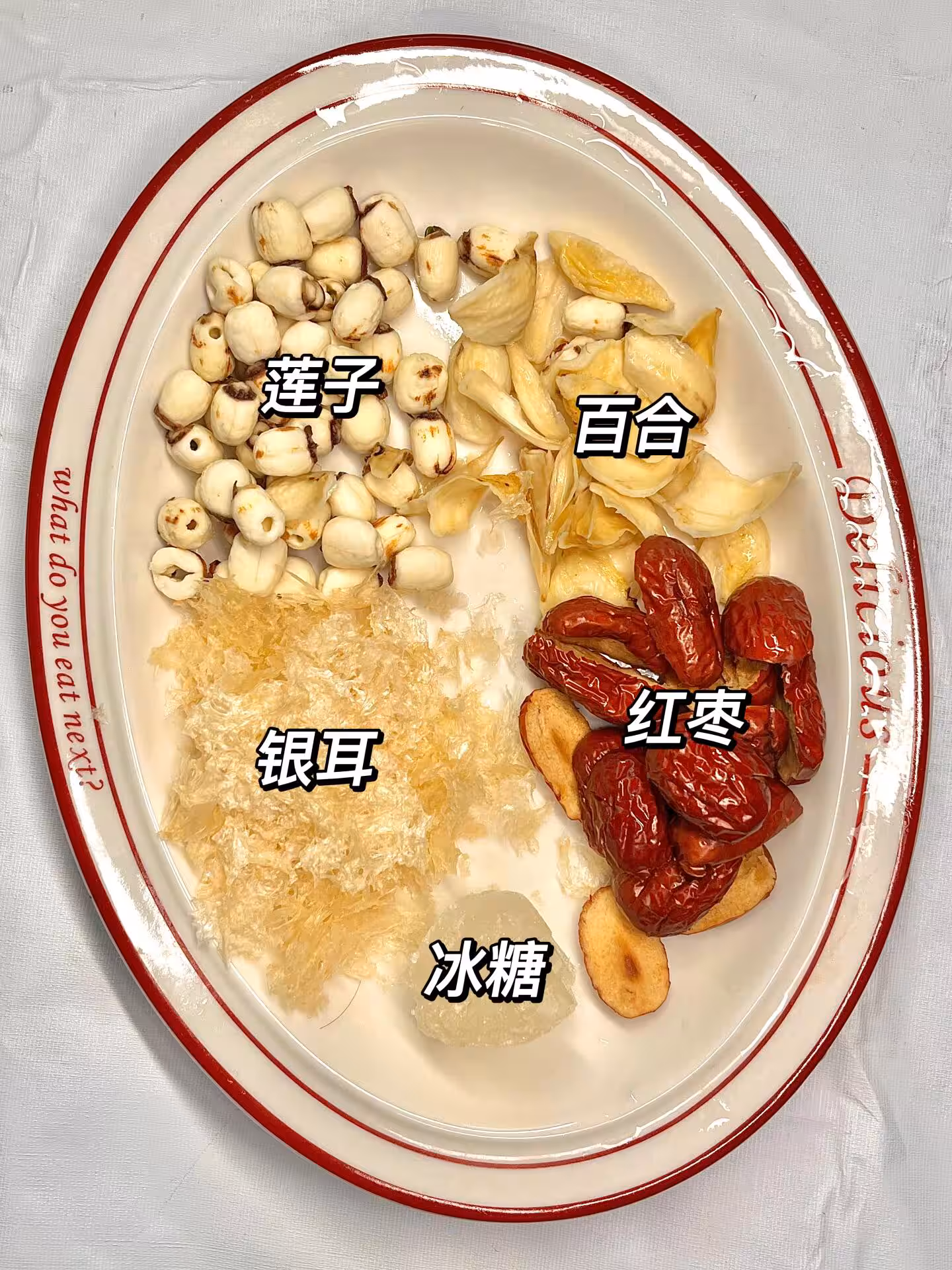 🌈食材:百合、蓮子、銀耳、紅棗、冰糖、牛奶(可不要)