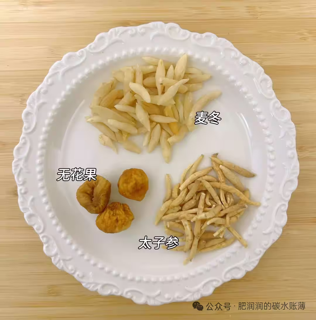 麥冬 5克 + 無花果3顆 + 太子參 5克