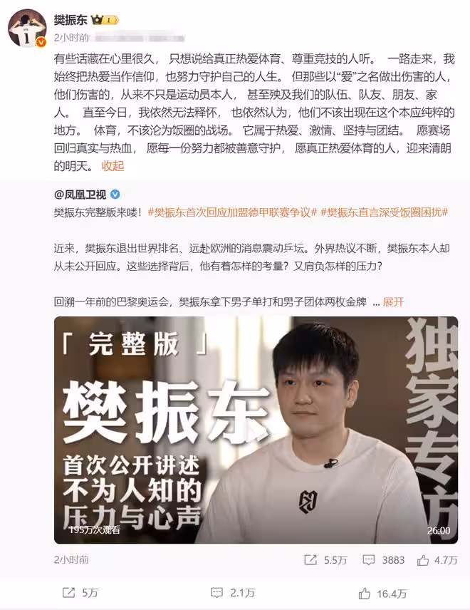 樊振東說出奧運必須奪冠內情!一番話讓人肅然起敬,飯圈啞口無言