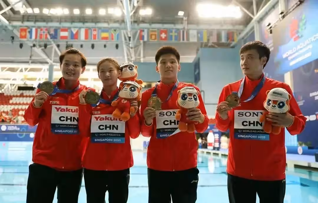 2025 年 7 月 26 日新加坡世界泳聯世錦賽,花樣游泳中國隊成大贏家,獲 4 金 3 銀,包攬三個集體項目冠軍,徐匯妍、郭牧創歷史。