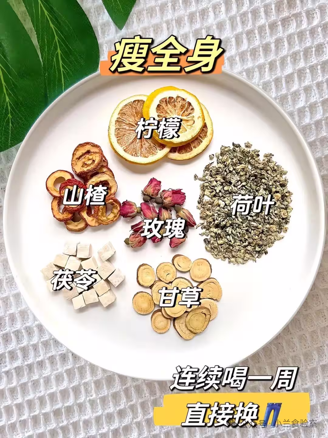 🌟全明星陣容:凍干檸檬2片 + 玫瑰花5朵 + 山楂8g + 荷葉10g + 茯苓8g + 甘草4g