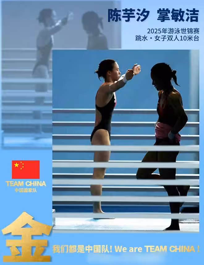 近日,陳芋汐搭檔掌敏潔,在2025新加坡游泳世錦賽女子跳水雙人10米台決賽中拿到了金牌。