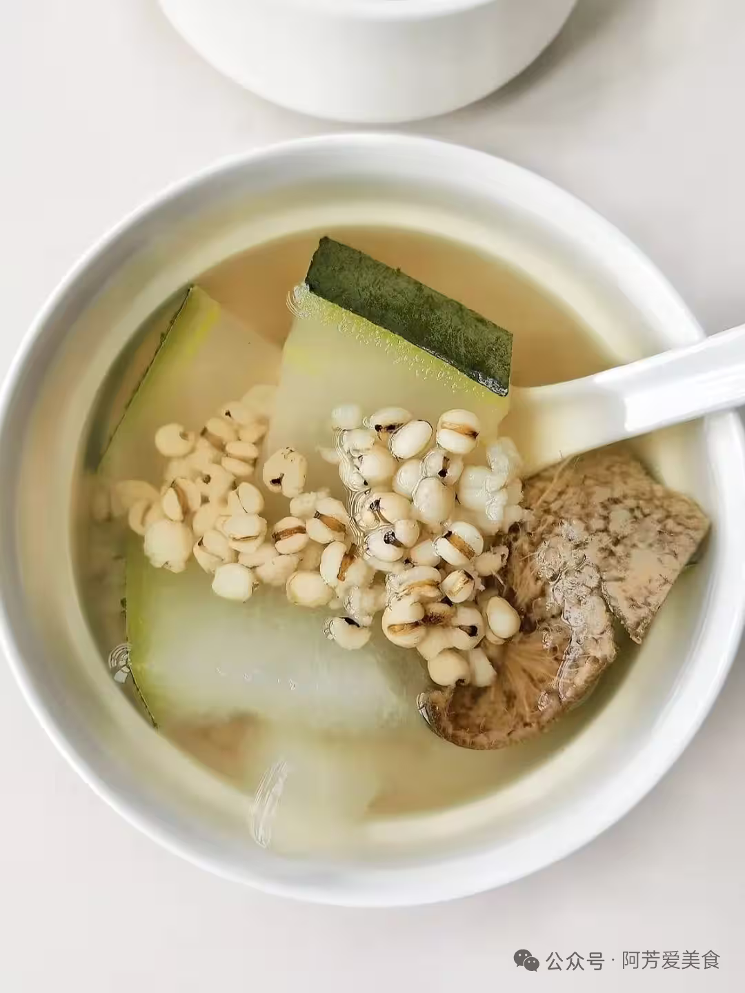 湯水盛在碗里,是那種很溫潤的淺金色,冬瓜塊半透明,燉得軟糯。湊近碗邊吹一吹,小心啜一口,最先嘗到的是炒米帶來的那份厚實的穀物香氣,暖暖地滑下去,接著是陳皮那股特別的甘醇滋味在舌尖漾開,最後是冬瓜的清甜收尾。