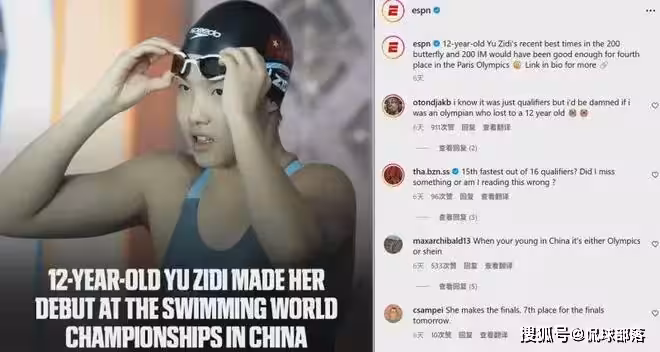 就在世錦賽結束僅一天,美國三大媒體發文誇讚於子迪,比如《ESPN》,將於子迪的圖片作為頭條封面新聞,並寫道:「對於一個正在上六年級的孩子來說,這一成就令人震驚。」