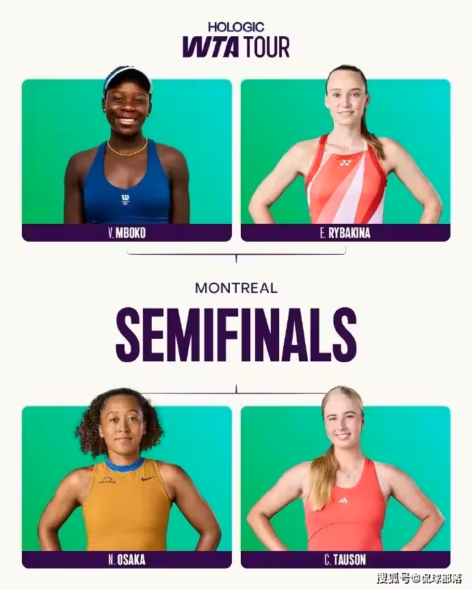 本年度WTA第七項1000賽——蒙特婁站,已經進入了尾聲階段,產生半決賽的對陣形勢,具體如下: