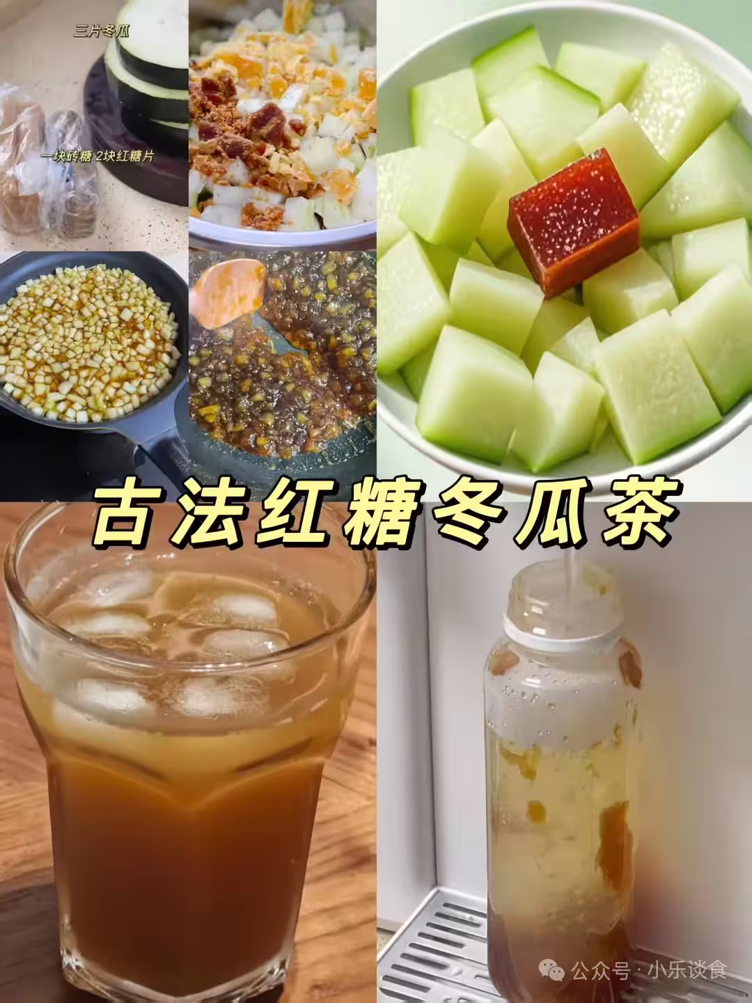 冬瓜切小塊,和紅糖、冰糖一起熬煮至濃稠,變成冬瓜茶膏,喝時取適量膏體,用熱水沖泡,加冰塊🧊 超爽!