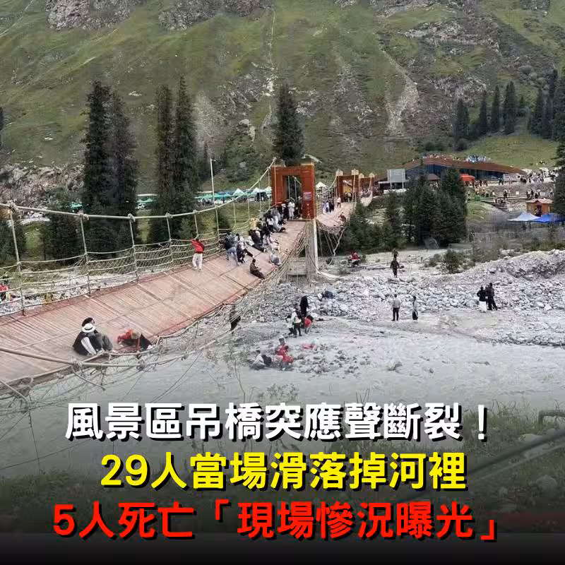快訊/風景區吊橋突應聲斷裂!29人當場滑落掉河裡 「現場慘況曝光」