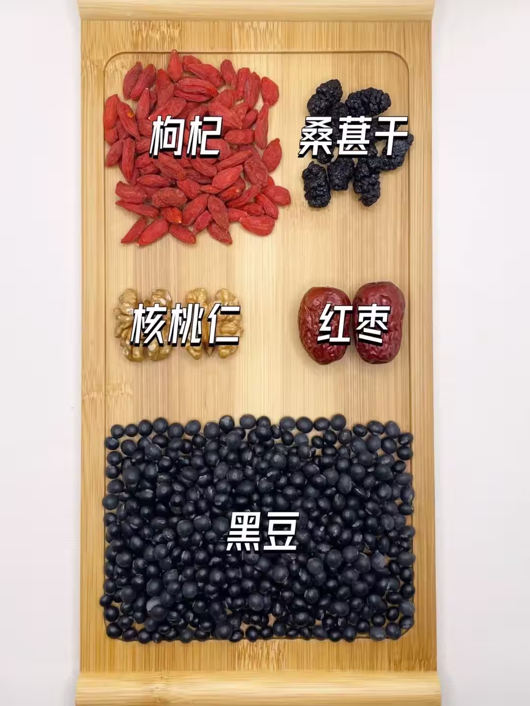 桑葚煮過之後,水會變成好看的深色,帶著一股獨特的果香。黑豆的豆香和桑葚的味道融合得剛好,溫溫地喝下去,嘴裡留下一點自然的酸甜,很舒服。桑葚煮軟後嚼一嚼,也挺有滋味的。