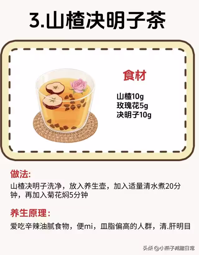 食材:山楂10g、玫瑰花5g、決明子10g。