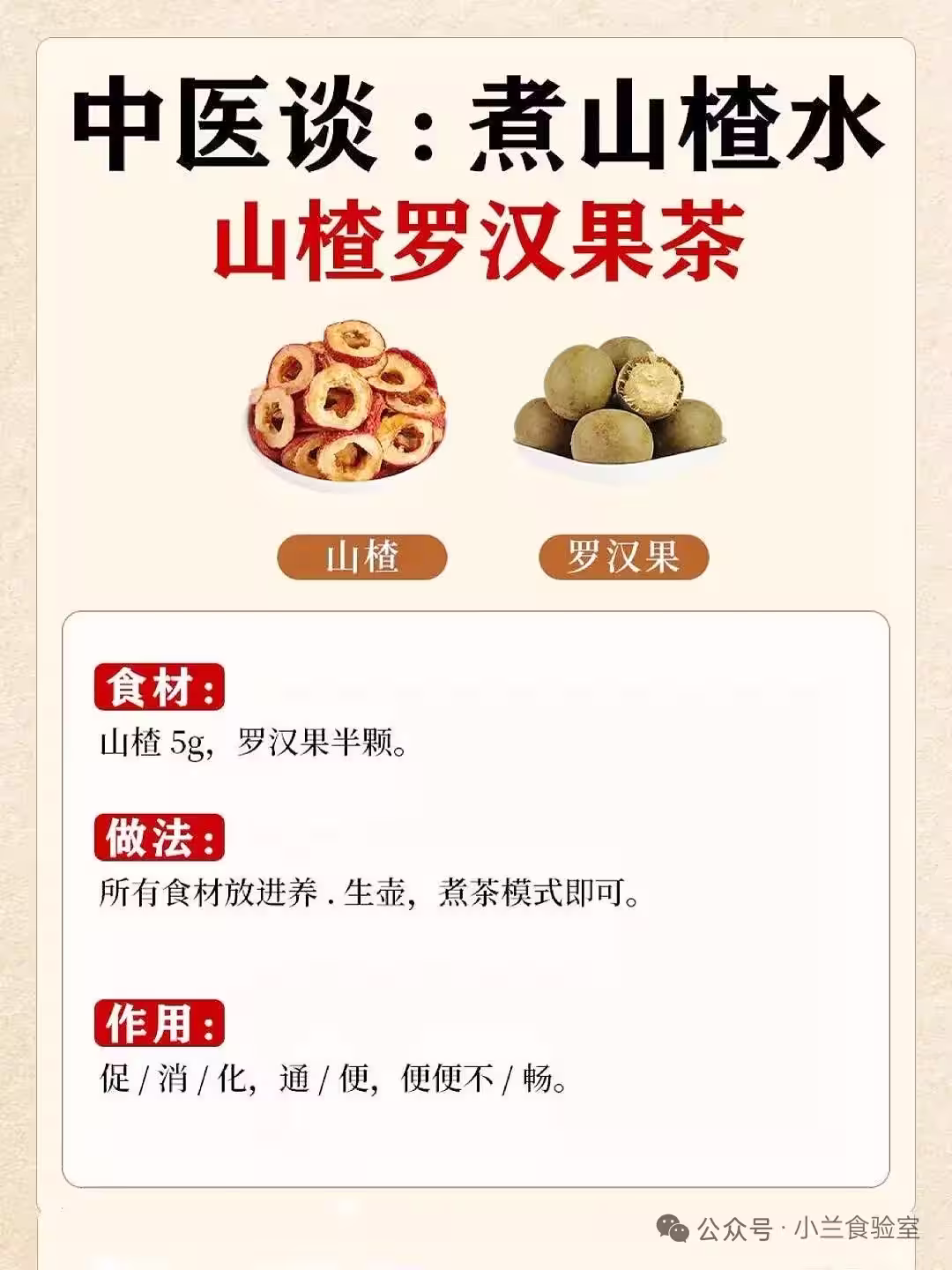 山楂5g、羅漢果半顆