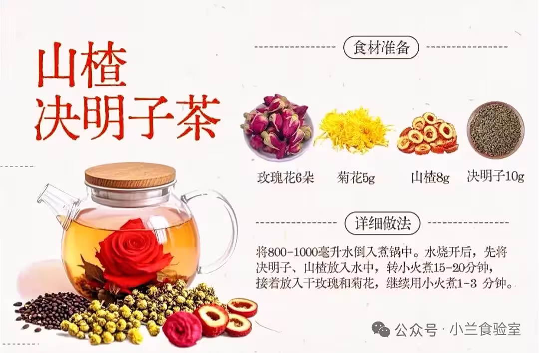 【暖心功效】 決明子和菊花是經典的「明目黃金搭檔」,特別適合手機黨、電腦族,緩解眼疲勞、乾澀;決明子還能潤腸通便;山楂助消化;玫瑰花調和口感,疏解鬱氣。一杯下肚,感覺眼睛明亮了,火氣也降了,腸道也輕鬆了!加班熬夜、用眼過度的朋友必備!