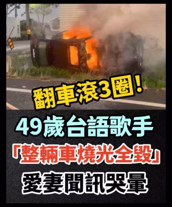 翻車滾3圈!49歲台語歌手「整輛車燒光全毀」 愛妻聞訊哭暈...