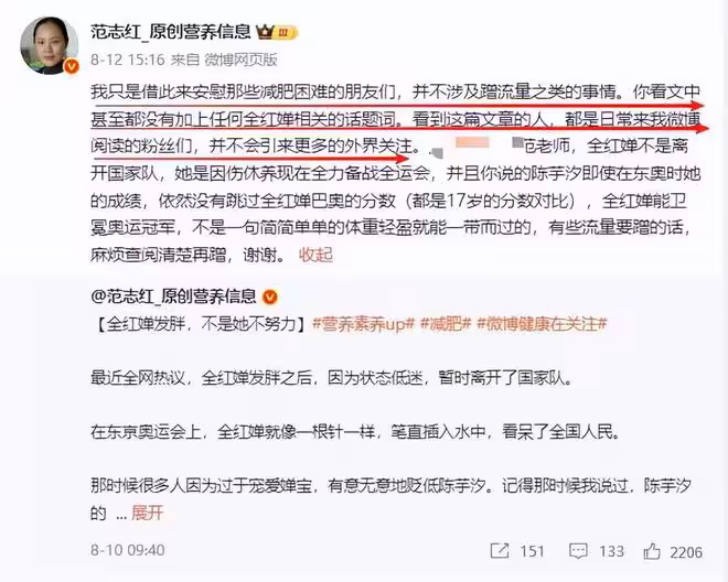 就在范志紅髮完文章後的第3天,這位名叫「李子暘Lee 」的博主特意轉發了這篇文章,還配文說: