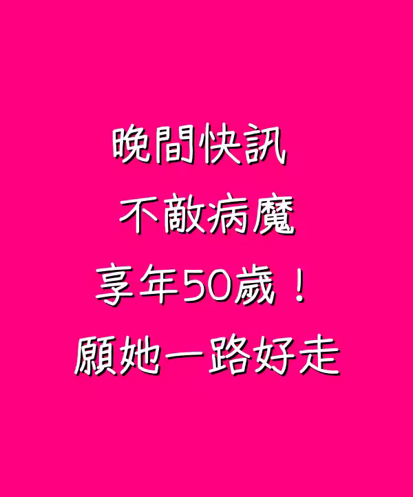 晚間快訊 / 不敵病魔享年50歲! 願她一路好走!