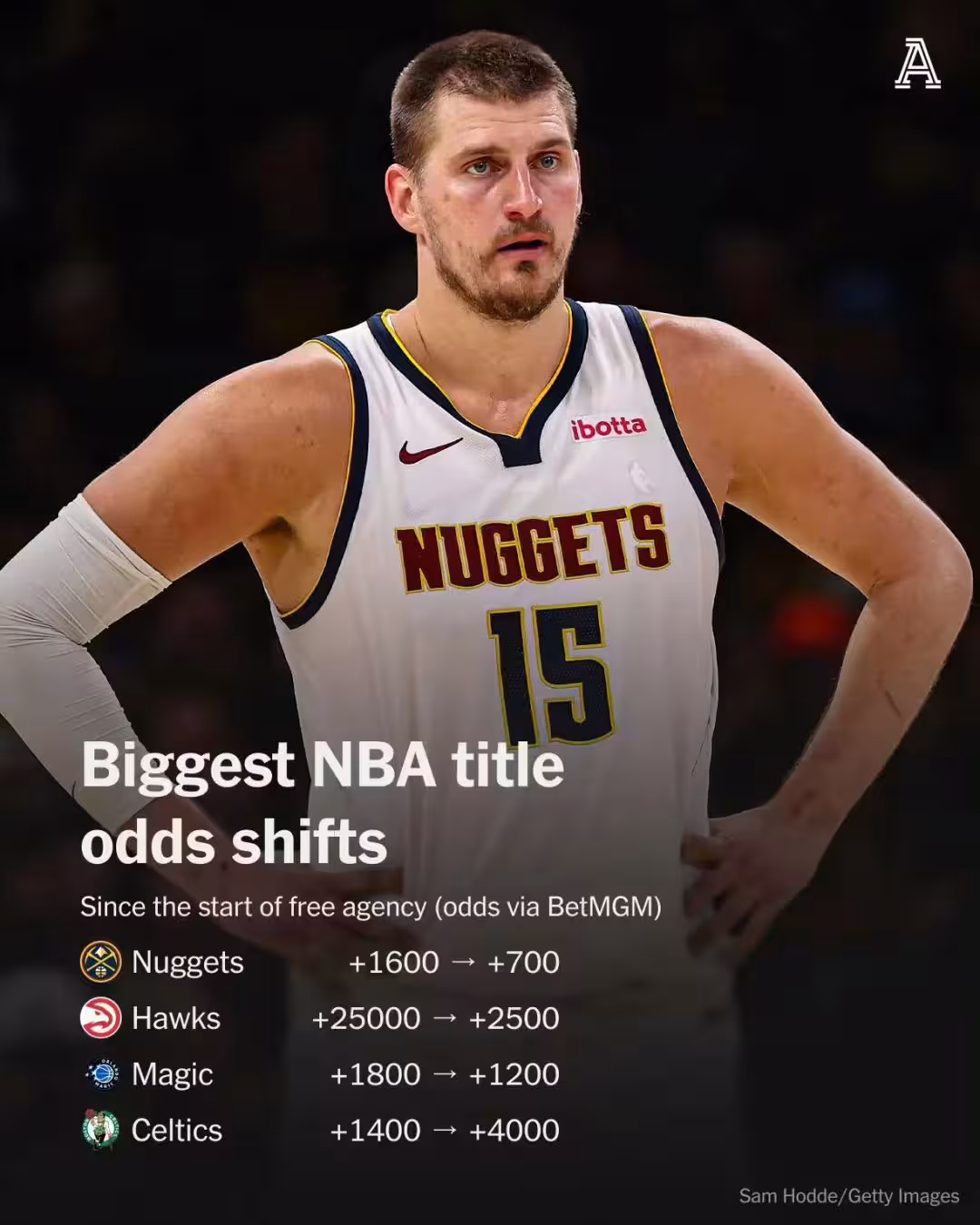 在近日,國外網站公布了新賽季NBA總冠軍賠率榜單,其中衛冕冠軍雷霆高居第一,掘金躍至第二,騎士尼克斯並列第三,火箭第四。